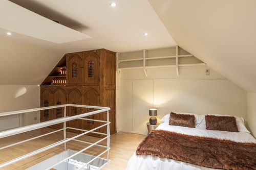 La suite Le Cocon est un espace mansardé, de dominance blanche qui invite à la douceur et la détente.