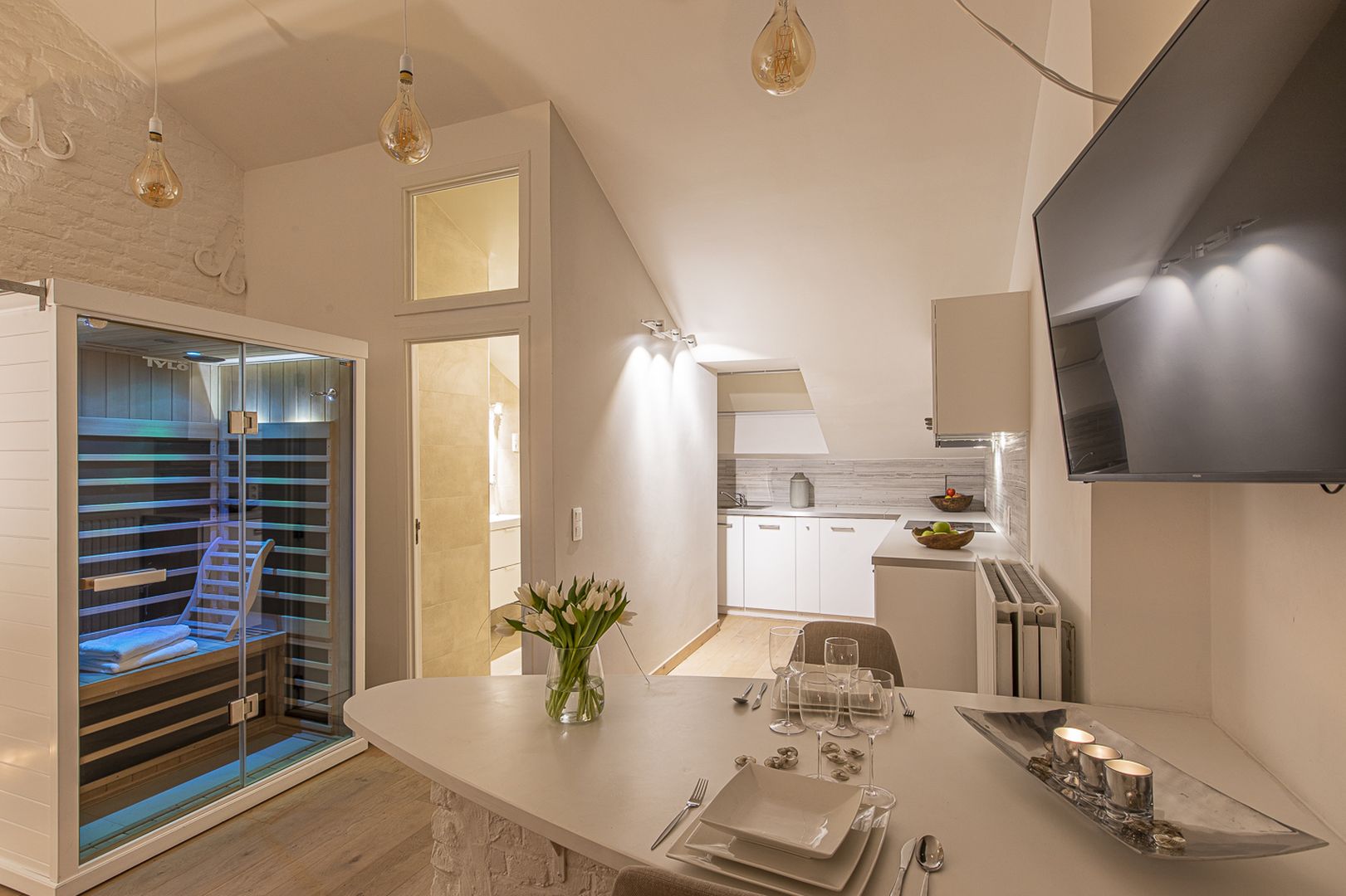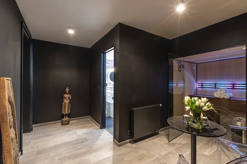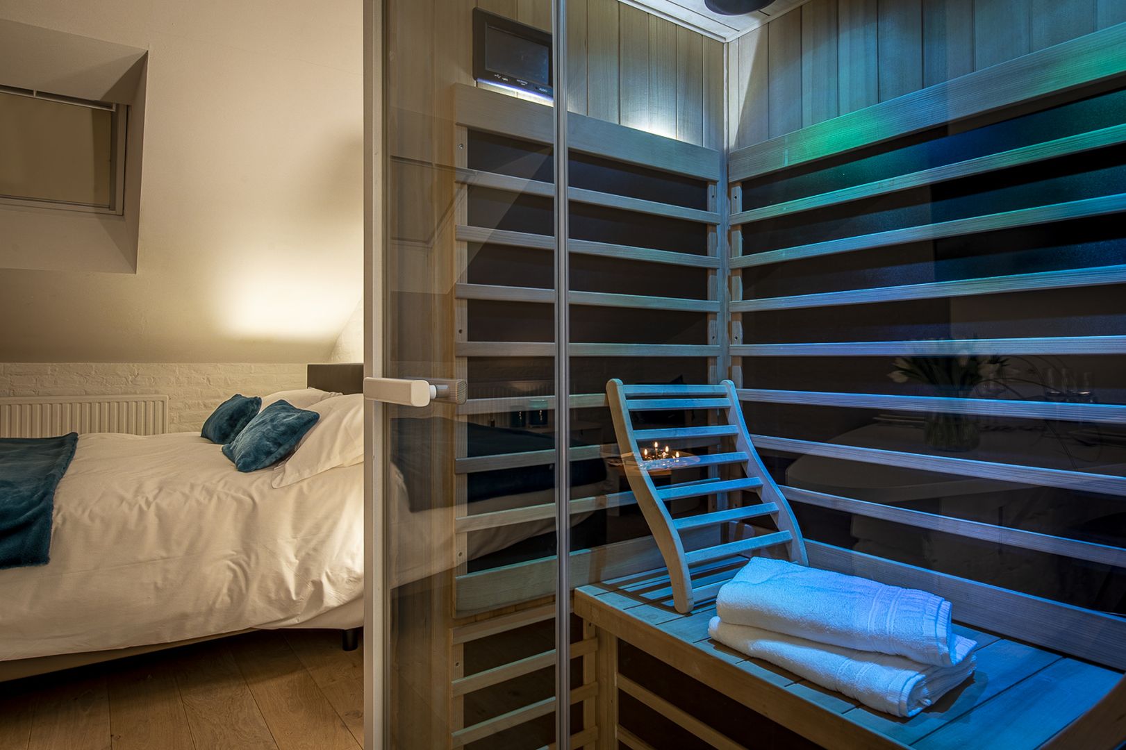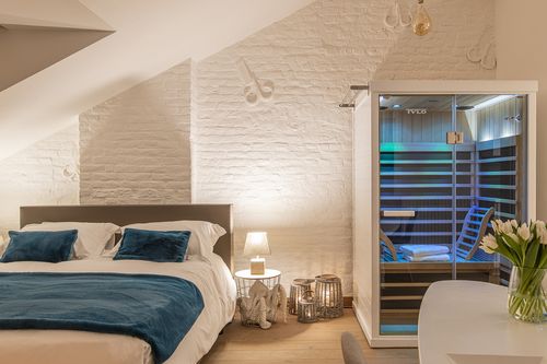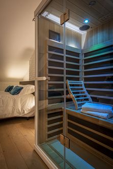 Sa balnéo et son sauna privatif, son petit espace salon sont les principaux atouts de la suite La Sérénité.