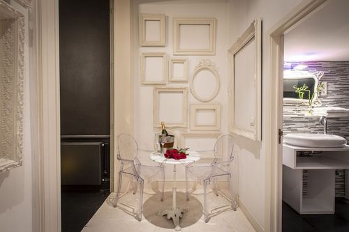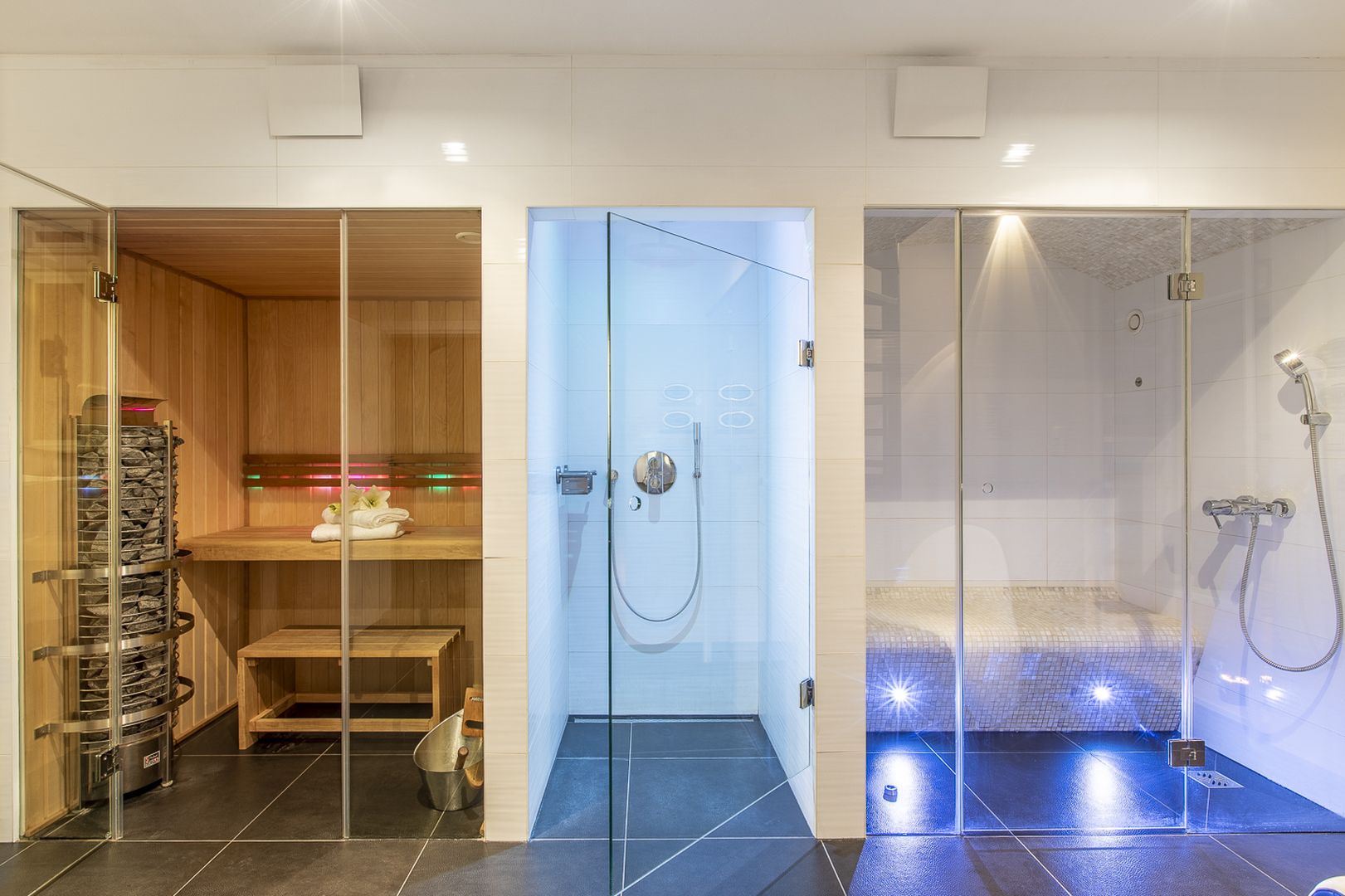 Le sauna et le hammam privatifs de cette suite invitent à un moment de détente dans un cadre qui se veut romantique.